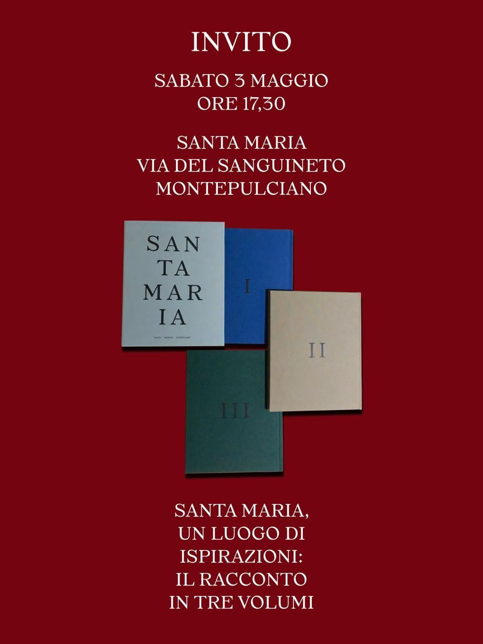 Milano, 27 apr. (askanews) – Evento di presentazione della trilogia dedicata a “Santa Maria, un luogo di ispirazione”, che si terrà il prossimo sabato 3 maggio in Toscana (Santa Maria, Via del Sanguineto, Montepulciano). Tre volumi che attraverso l’alternarsi di una attenta selezione di testi, interviste e scatti d’arte, riflettono più che mai che la vita è profonda nella sua semplicità. “Santa Maria, un luogo di ispirazione” nasce dall’amore per un territorio unico al mondo che nel corso dei secoli ha legato a sé numerose persone, provenienti da storie e percorsi diversi. E contiene tra l’altro i versi ispirati del poeta italoamericano Lawrence Ferlinghetti: “Il sole rosso tramonta sulla Toscana/ Attraversando i cipressi, sopra i rossi tetti/ e i rigogliosi, verdi vigneti,/ vicino Volterra e Piccioli./ Paesani su vecchie biciclette / per le lunghe strade di selciato / gli alberi volgono al marrone / come per la mancanza / del sole quando si nasconde / e i lampioni/ fanno capolino / nella piccola Ponsacco. / suonano le campane- / Cadono le tenebre!”